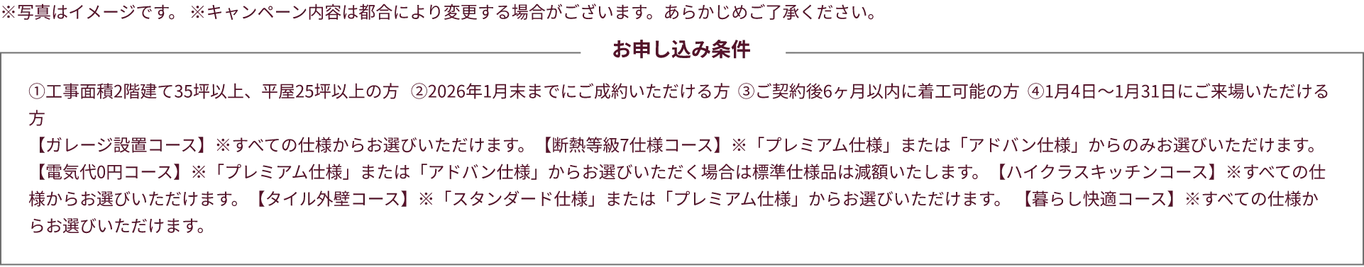 ※ご来場イベントのエントリールールに則ってご来場いただけなかった場合や、ご相談の内容により建築のご予定がないと当社にて判断させていただいた場合にご来場特典の送付を中止させていただく場合がございます。